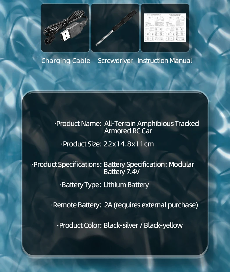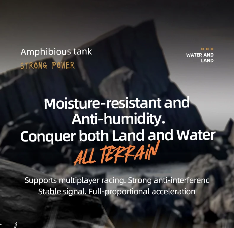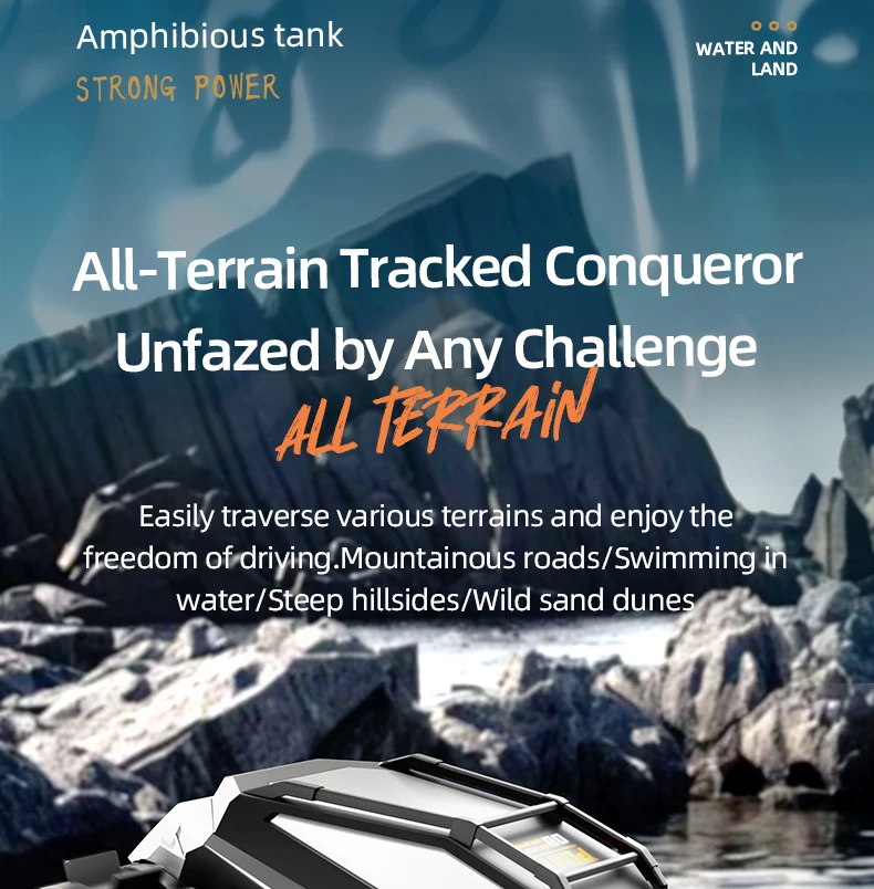 Unleash unstoppable fun with the RC Amphibious Tank Car, designed for bold adventures across any terrain. With its tank-like build, powerful tracks, and water-ready design, this remote control beast is built to thrill. Whether it’s racing over dirt, grass, sand, or splashing through water, nothing stands in its way.