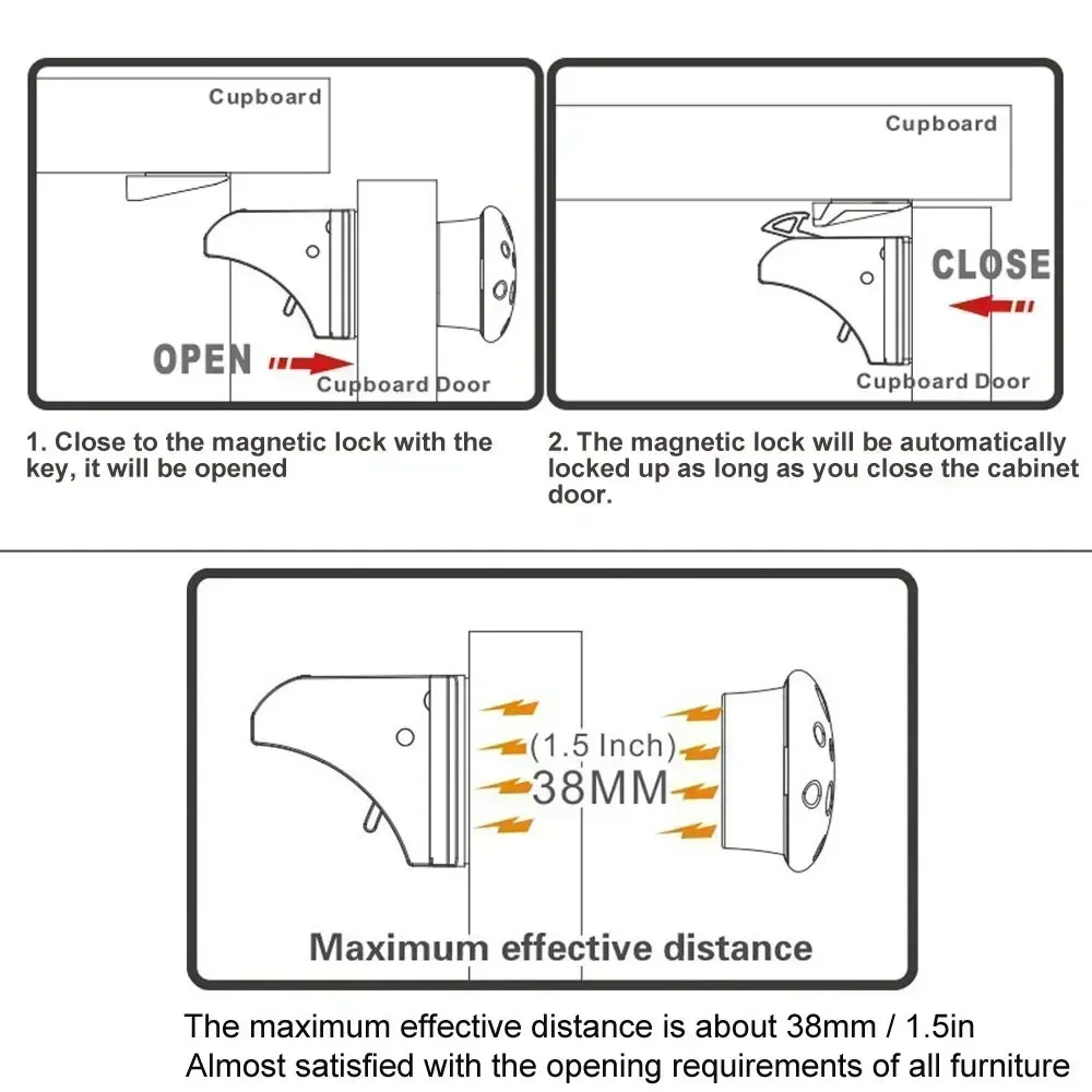 ②The magnetic lock will be automatically locked up as long as you close the cabinet door.