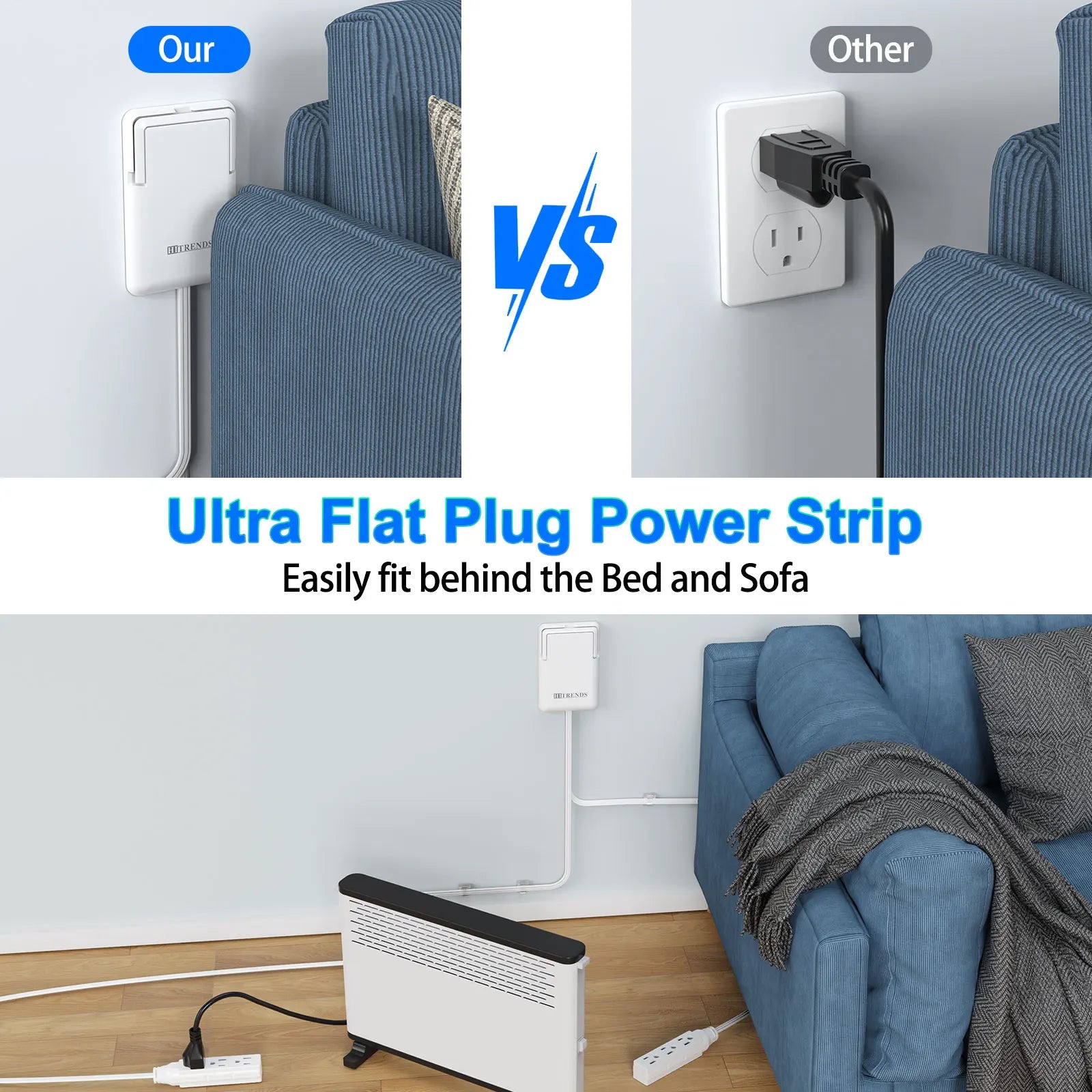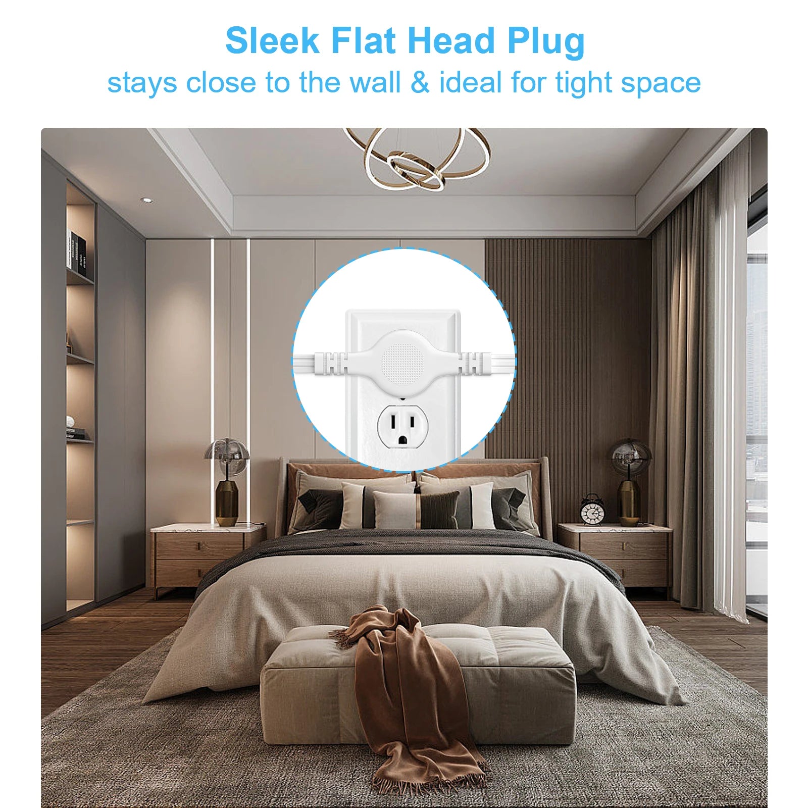 🔹 Ultra-Thin Flat Plug – Sits nearly flush against the wall so furniture can be pushed all the way back