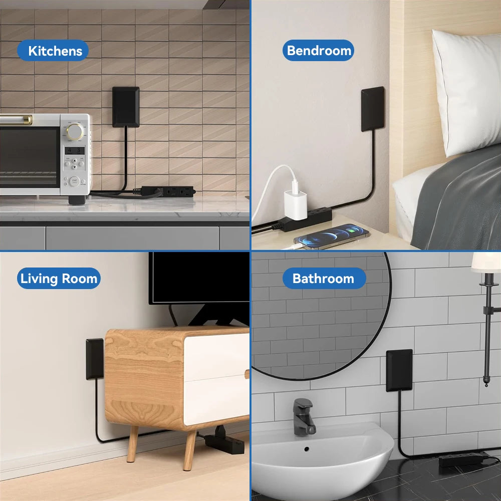 Perfect for behind beds 🛏️, couches 🛋️, desks 🖥️, dressers, and TVs, this sleek power solution keeps your space tidy, modern, and functional.